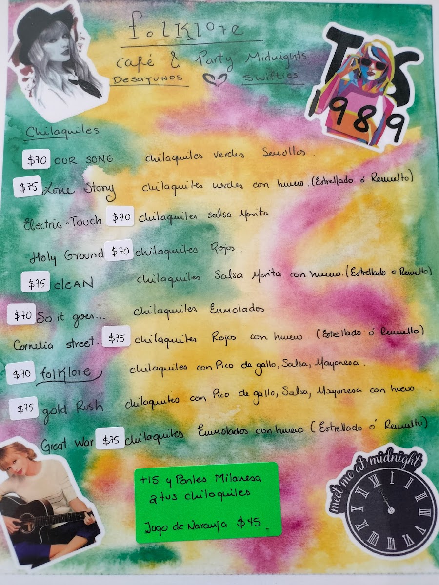Folklore café & party midnights Menu